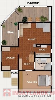 A földszinten található még egy hálószoba, és egy zuhanyzós fürdőszoba wc-vel.