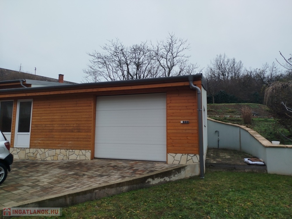 Garázs: 21 nm-es járólappal burkolt. Motoros garázskapuval zárható.
