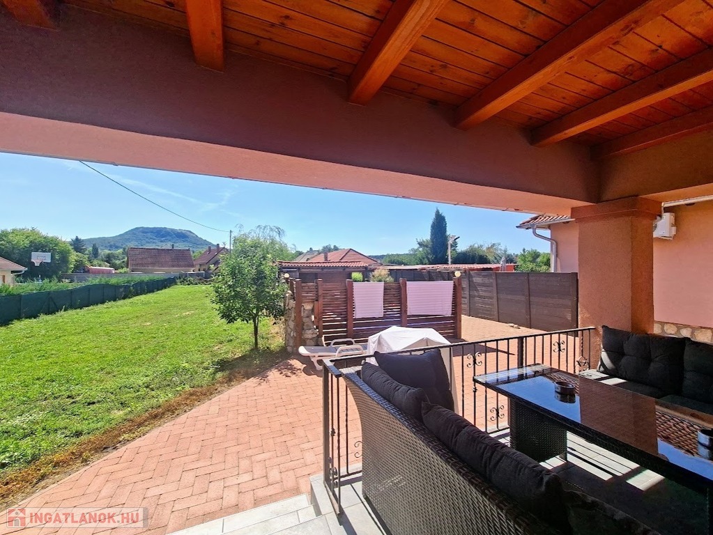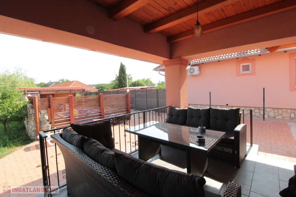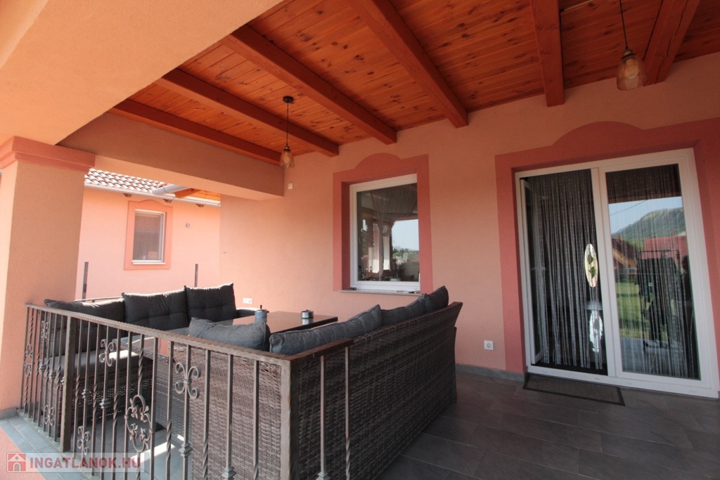 •Hátsókertre néző nagyméretű fedett terasz