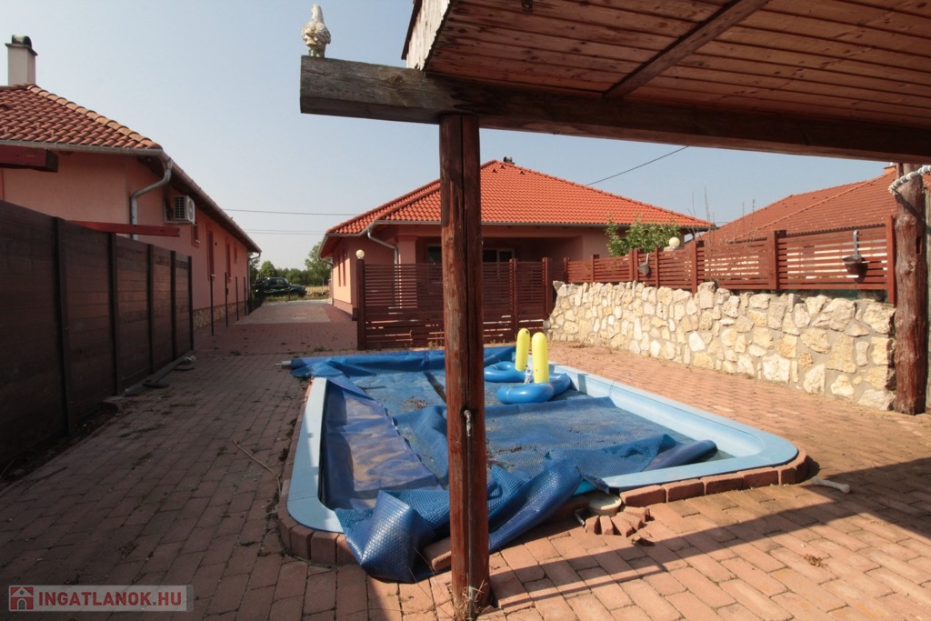 A kertben elhelyezkedő 3x5 méteres medence, az épített kemence és a pergola mind hozzájárulnak ahhoz, hogy az otthon tökéletes helyszíne legyen családi összejöveteleknek és baráti találkozóknak.