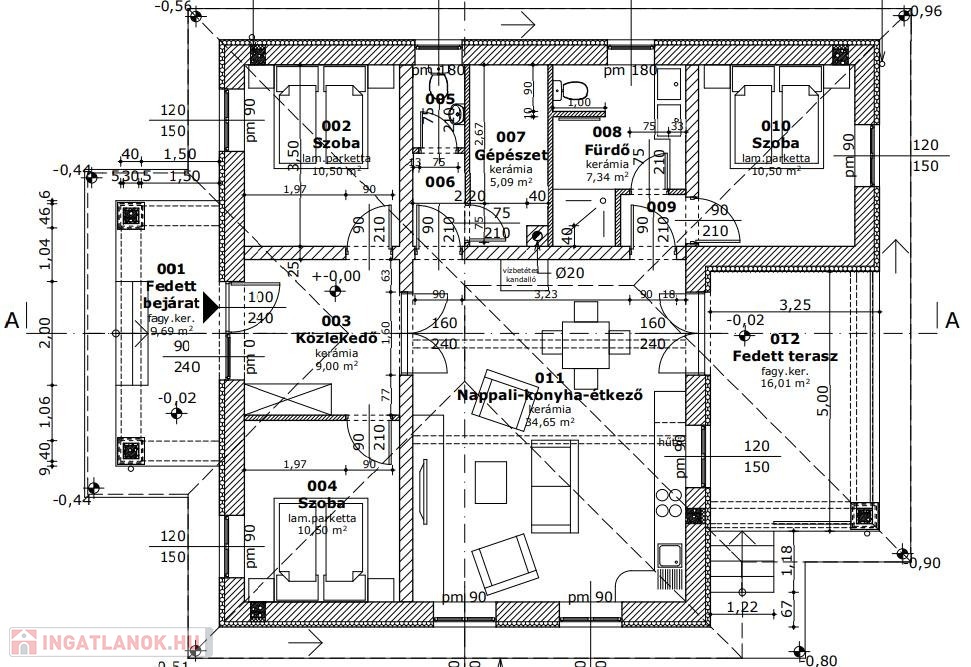 A ház praktikus elosztása a következő: