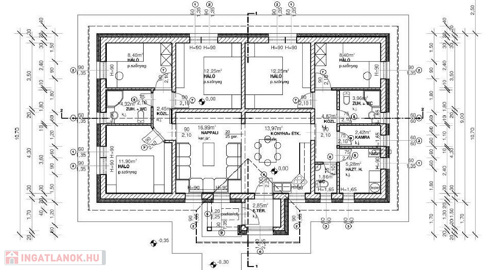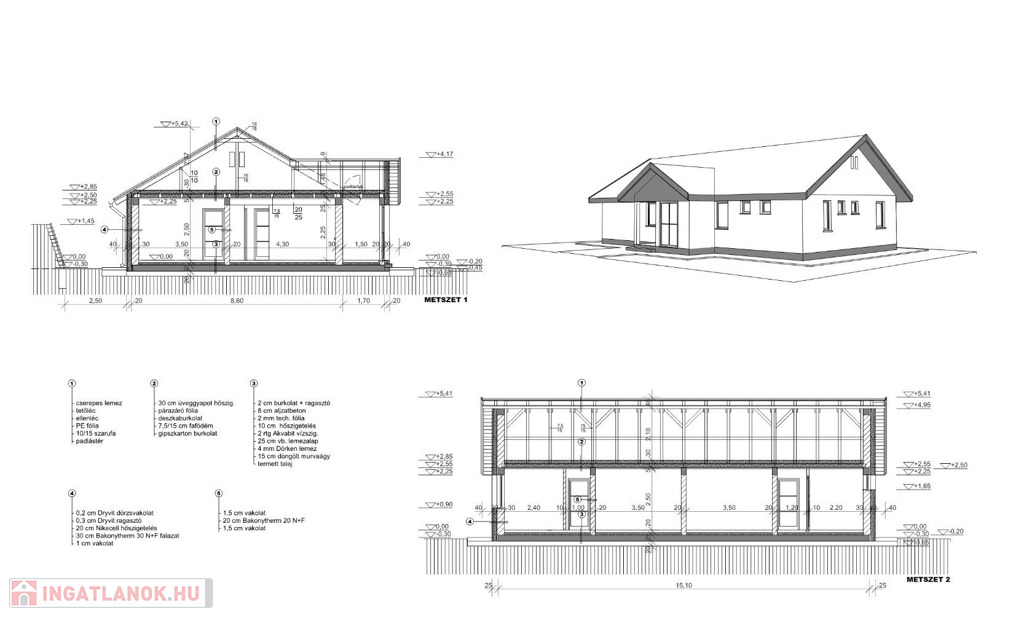 - szigetelés: 30cm mennyezetben, 20cm oldalfalon, 10 cm padlóban