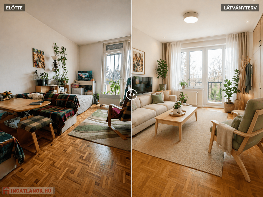 A lakás praktikus, jól alakítható, de jelenlegi elrendezése is kiváló, két külön nyíló szobával, ami remek alapot ad egy modern, élhető tér kialakításához.