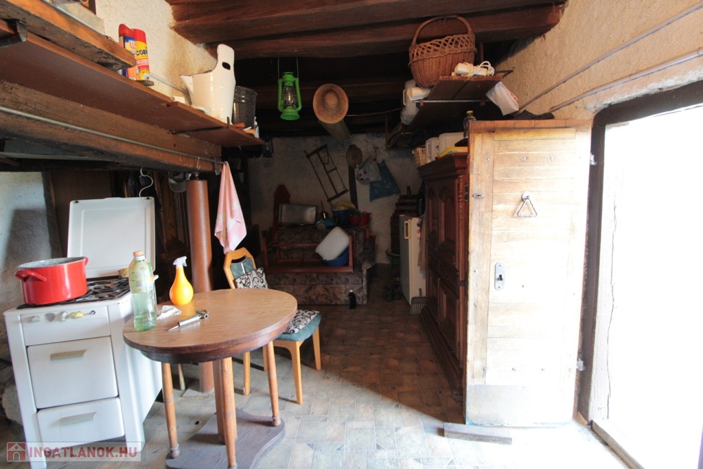 Belépve szemben egy régi „nyílt kemence” amit régebben füstölésre és főzésre használtak, jobbra egy helyiség és balra egy szoba található. Vizeshelyiség nincs kialakítva!