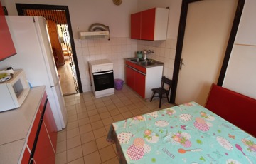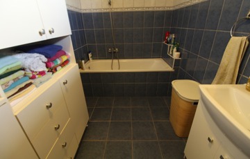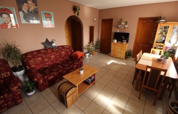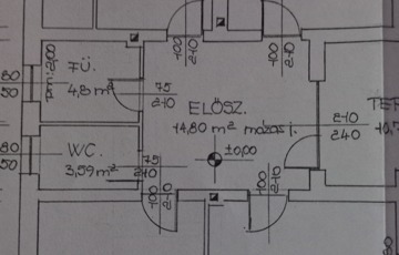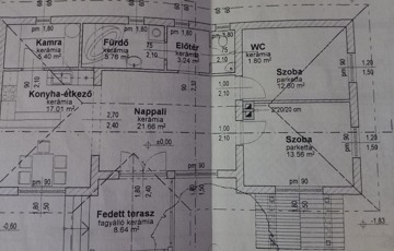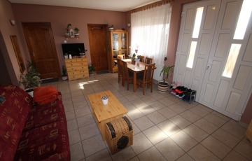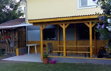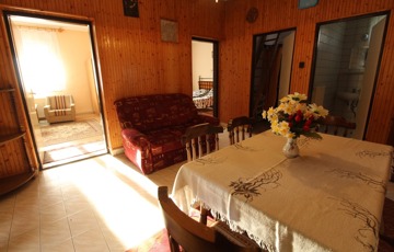 Elosztása: fedett terasz, nappali, konyha, mosószoba, fürdő, illemhelyiség, és 2,5 szoba.