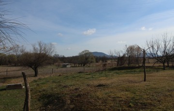 A Badacsonyra és a Szent György-hegyre néző kert könnyen kezelhető, szépen gondozott a végében patakkal.