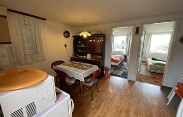 Az épület ikerházként téglából épült, egyik fele 70 nm, ahol a földszinten kialakításra került 2 szoba, konyha-étkező és egy fürdőszoba, a lakószint alatt egy szoba, konyha és borospince található.