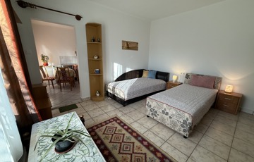 A másik lakóépület vagy privát vendégház— egy felújított, 30 m²-es kis otthon, ami éppen annyira intim és hangulatos, amennyire praktikus. Vendégek számára tökéletes, de lehet egy önállóan működő mini-lakás, iroda, alkotótér vagy kiadható apartman.