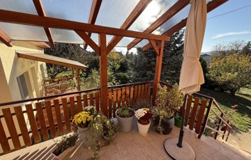 A főépület lakórésze 115m2, 1987-ben téglából épült 2 szintes családi ház, melybe egy kényelmes 18 m²-es teraszról lépünk.
