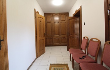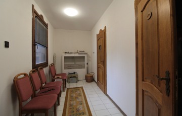 A dupla garázs mindkét oldaláról nyílik bejárat a házba. Könnyedén lehetséges ügyvédi iroda, rendelőnek való hasznosítása itt külön Wc, váróterem és szoba található. Innen közvetlen átjárás biztosított a nappalit és a garázst is összekötő előtérbe.