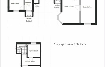 -Tetőtér: fürdő+WC, szoba (30 m²)