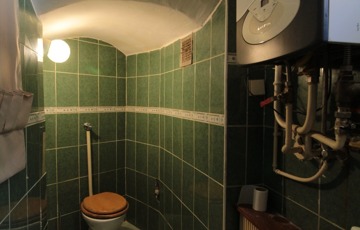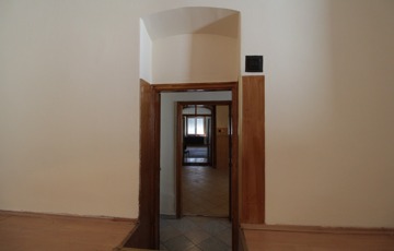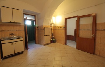 • Közlekedő: jobbra egy boltíves konyha, fürdő+WC és egy nagyméretű szoba található